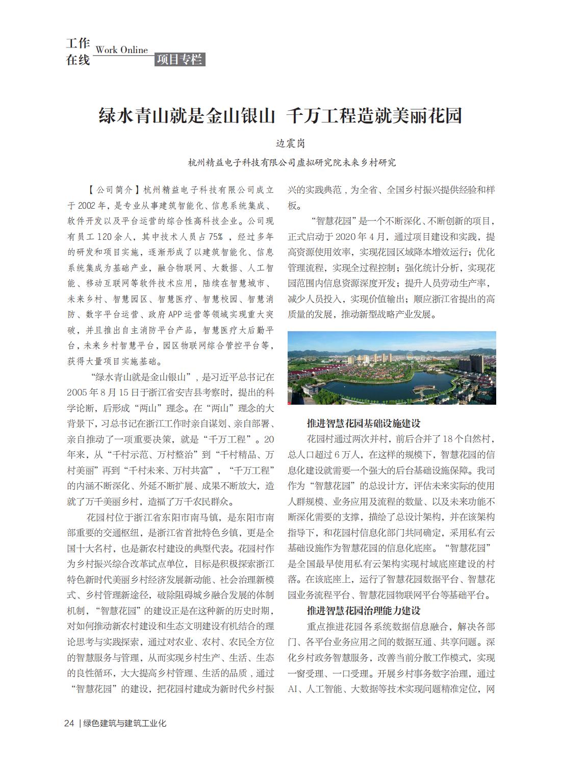 公司首登《浙江省綠色建筑與建筑工業(yè)化協(xié)會雜志期刊》第30期的封面企業(yè)!刊內(nèi)入選多個公司標(biāo)志性的重點項目及技術(shù)支持中心負(fù)責(zé)人邊震崗編寫的《綠水青山就是金山銀山 千萬工程造就美麗花園》論文!