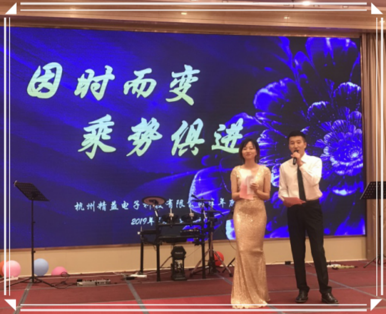 晚上18時,晚宴正式開始,一曲《老男孩》彈唱、一場《斧頭幫》情景劇展現(xiàn)了精益人多才多藝的一面。歌聲陣陣,笑聲片片,晚宴現(xiàn)場熱鬧非凡。